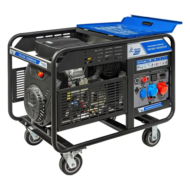 Бензиновый генератор TSS SGG 18000EH3A – производительная трехфазная электростанция с поддержкой автозапуска, используемая как источник электроэнергии с напряжением в 230 V, частотой в 50 Гц и номинальной мощностью 17 кВт. Отличается высокой эффективностью, надежной конструкций, длительной непрерывной эксплуатацией и возможностью работать в самых сложных климатических условиях.
