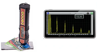 Электромагнитно-акустический толщиномер EM4000 имеет возможность подключения при помощи Bluetooth планшета, смартфона или другого устройства на базе ОС Android. Это позволяет расширить возможности толщиномера, анализировать А-скан, B-скан, работать со стробами, выбирать режим измерения толщины, параметры обработки сигнала и т.д.