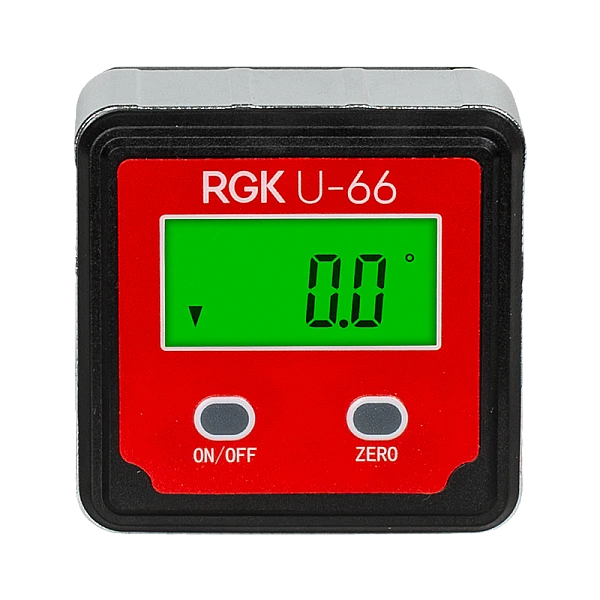 Для включения цифрового угломера RGK U-66 достаточно нажать кнопку ON/OFF. Клавиша “ZERO” служит для обнуления показаний прибора.