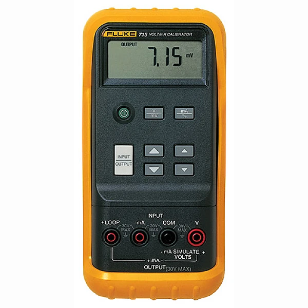 Калибратор Fluke 715 позволяет контролировать выходные сигналы отдельных компонентов систем автоматики (датчиков, преобразователей, контроллеров и пр.), измеряя напряжение и силу тока, генерировать сигналы тока и напряжения, имитируя работу датчиков и трансмиттеров, а также запитывать от внутреннего источника петлю тока с одновременным выполнением измерений (при выполнении проверок пассивных сетевых компонентов).