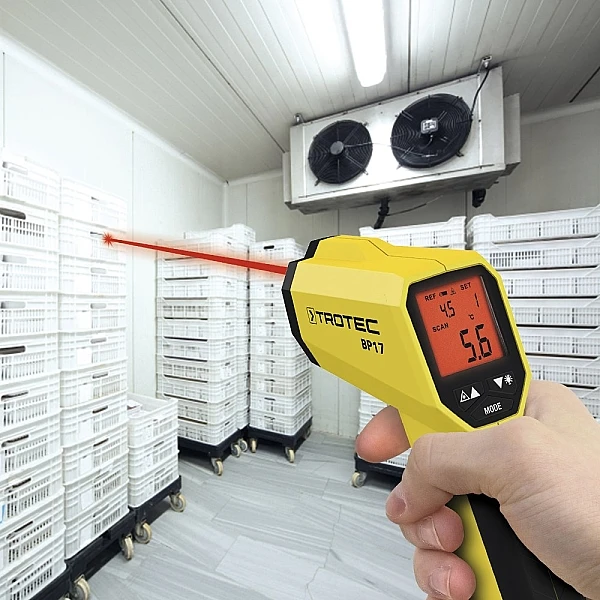 Используйте пирометр Trotec BP17 в холодильных камерах и на складах с глубокой заморозкой, чтобы быстро и легко проверить, соответствует ли хранящийся товар указанному температурному диапазону. Это идеально подходит, например, для гастрономического сектора, логистических компаний и фармацевтических предприятий.