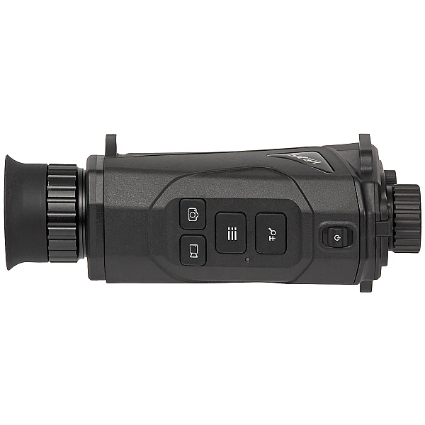 Монокуляр отличается компактностью и малым весом — всего 238 г, что делает его удобным для постоянного ношения. Простое управление реализовано через крупные кнопки, а эргономичный корпус подходит для использования в полевых условиях. Предусмотрено крепление на штатив (1/4") и возможность установки ремня.