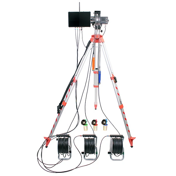 Установка позволяет осуществить ультразвуковой контроль однородности и сплошности бетона в сваях, и иных заглубленных и труднодоступных конструкциях, оборудованных трубами доступа, межскважинным ультразвуковым методом по времени, скорости распространения и затуханию ультразвукового (УЗ) сигнала.