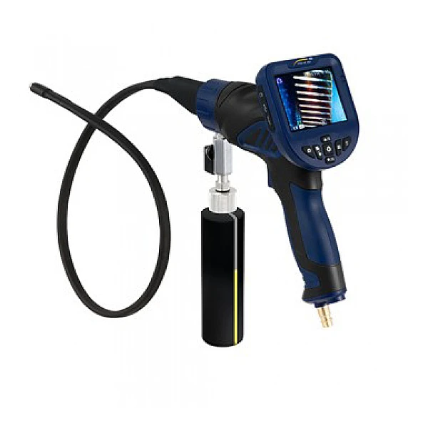 При диагностике с помощью цифрового эндоскопа изображения и видео можно сохранять на карте micro SD ёмкостью 4 ГБ. Также в комплект поставки входит контейнер для жидкости, в котором может быть заполнена чистящая жидкость. Использование цифрового эндоскопа требует подключения сжатого воздуха. Для этого требуется давление от 6 до 8 бар. Зарядка эндоскопа осуществляется через интерфейс USB. Однако нормальный срок службы аккумулятора составляет четыре часа при непрерывной работе. Освещение камеры можно контролировать при помощи дисплея. Головка камеры имеет диаметр 8,5 мм. Кабель защищен от воды, пыли и масла с классом защиты IP67